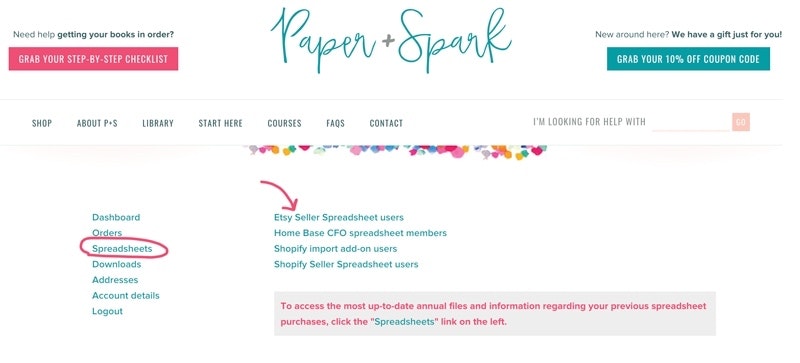 You can also log into your account at paperandspark.com and click "Spreadsheets". Your account is automatically set up under the email address you used to compete your purchase at paperandspark.com